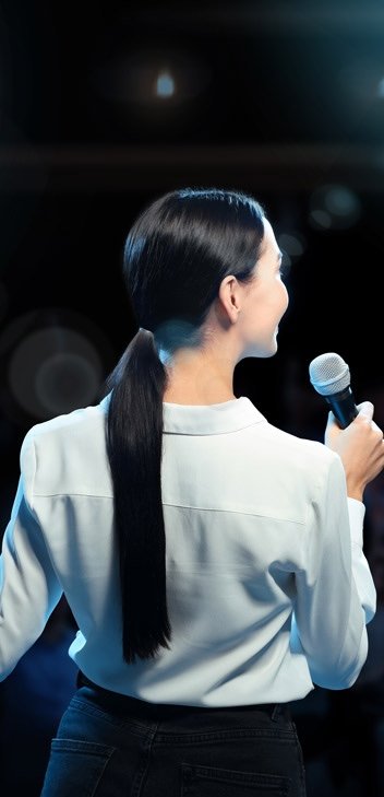 Enter the space with ownership. Stake a position. Get out from behind that laptop. Suppress the urge to wander, look down, or avoid eye contact. Relax the arms, uncross the feet, keep hands out of pockets, and never clasped behind the back or in front of the genitals. Vary the stance, approach the listener, and close the gap between stage and viewer. Gesture for emphasis and move with purpose. These efforts show confidence that commands attention before uttering a word.